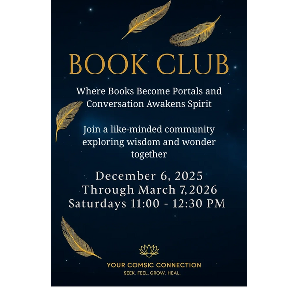 Your Cosmic Connection will be starting a Book Club, every Saturday from 11am to 12:30pm starting on December 6, 2025 through March 7, 2026.